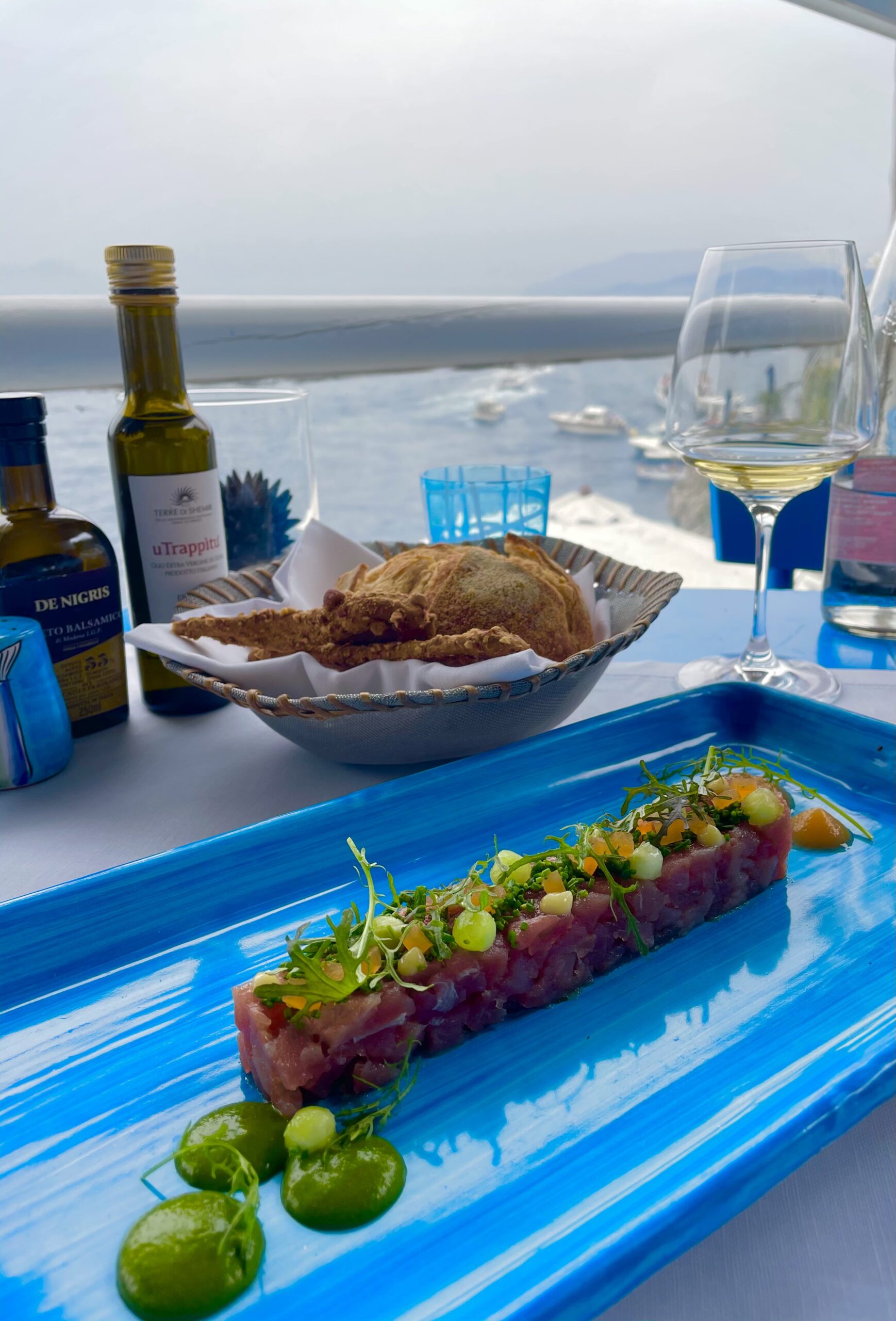 Mi piace molto variare – spiega il Sommelier Pasquale Sommella- a seconda del tipo di vino desiderato dal cliente cerco di abbinare una scelta a pennello per le varie portate, ad esempio spesso mi piace abbinare anche un rosso fresco, tipo un “Frappato Siciliano” su una portata di pesce come la tartara di tonno.