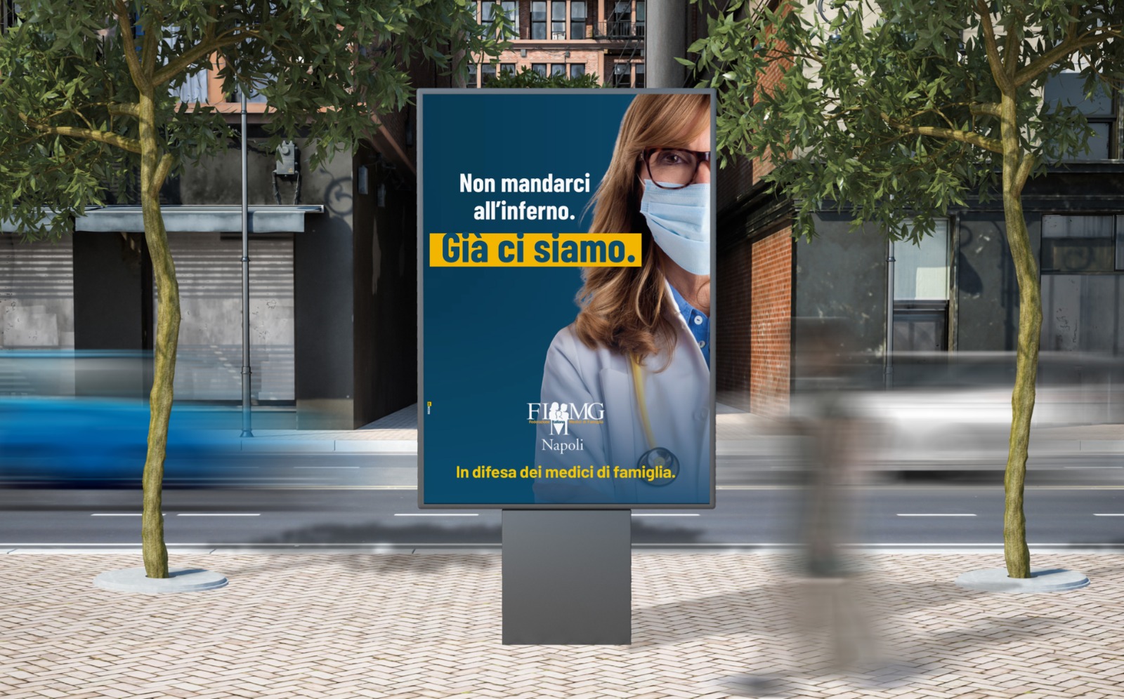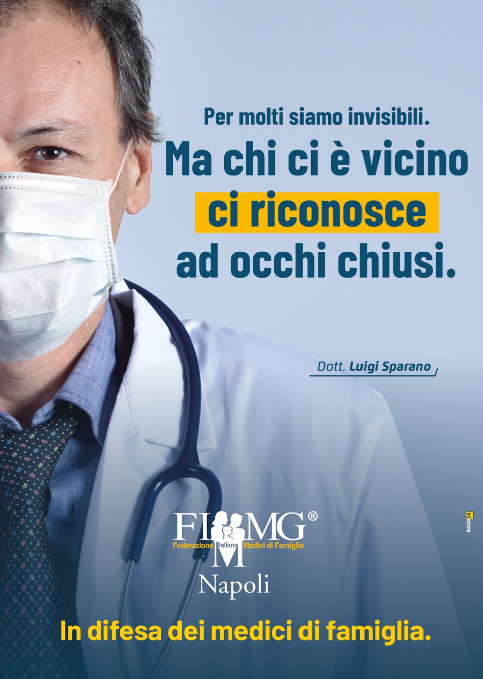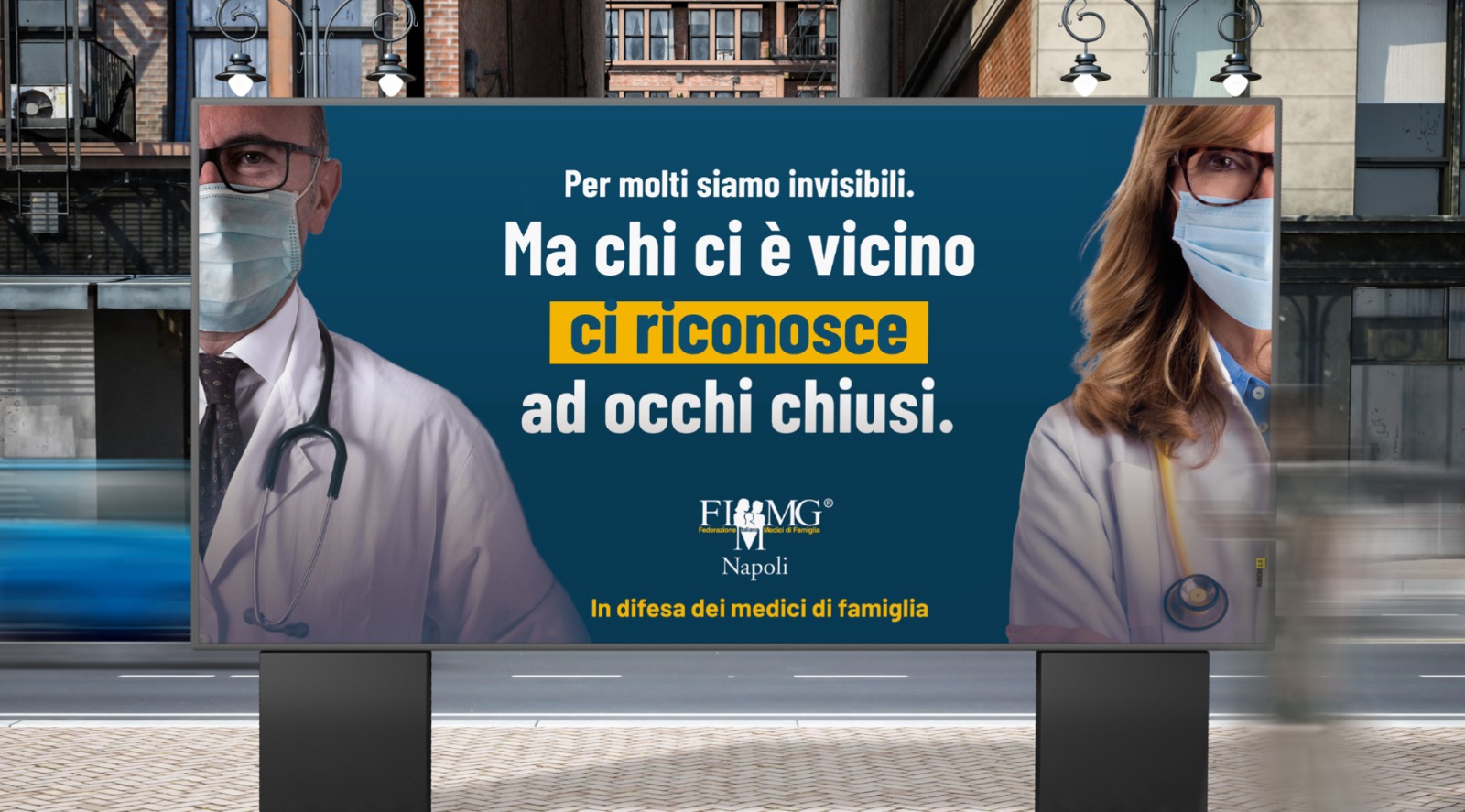 La FIMMG Napoli scende in campo in difesa dei medici di famiglia, e lo fa con una campagna di sensibilizzazione che partirà dalle strade e dagli studi degli stessi medici di famiglia. Dal 21 dicembre al 14 gennaio, manifesti 6 per 3 metri parleranno ai cittadini. Molto eloquenti gli slogan: «Per molti siamo invisibili, ma chi ci è vicino ci riconosce ad occhi chiusi», «Non mandarci all’inferno. Già ci siamo», «Abbiamo giurato di aiutare gli altri. Quando ci insultate, ricordatevelo», «Ogni giorno viviamo esperienze che nessuno conosce. Forse è per questo che si dimenticano di ciò che facciamo». Quattro frasi che vanno dritte al cuore di chi le legge e ricordano come i camici bianchi, in particolare i medici di famiglia, siano coloro che in questa pandemia stanno pagando il prezzo più alto; chiamati al compito impossibile di rispondere ogni giorno a centinaia di chiamate e richieste di consulto con ogni mezzo possibile, dalle e-mail a Whast’App.