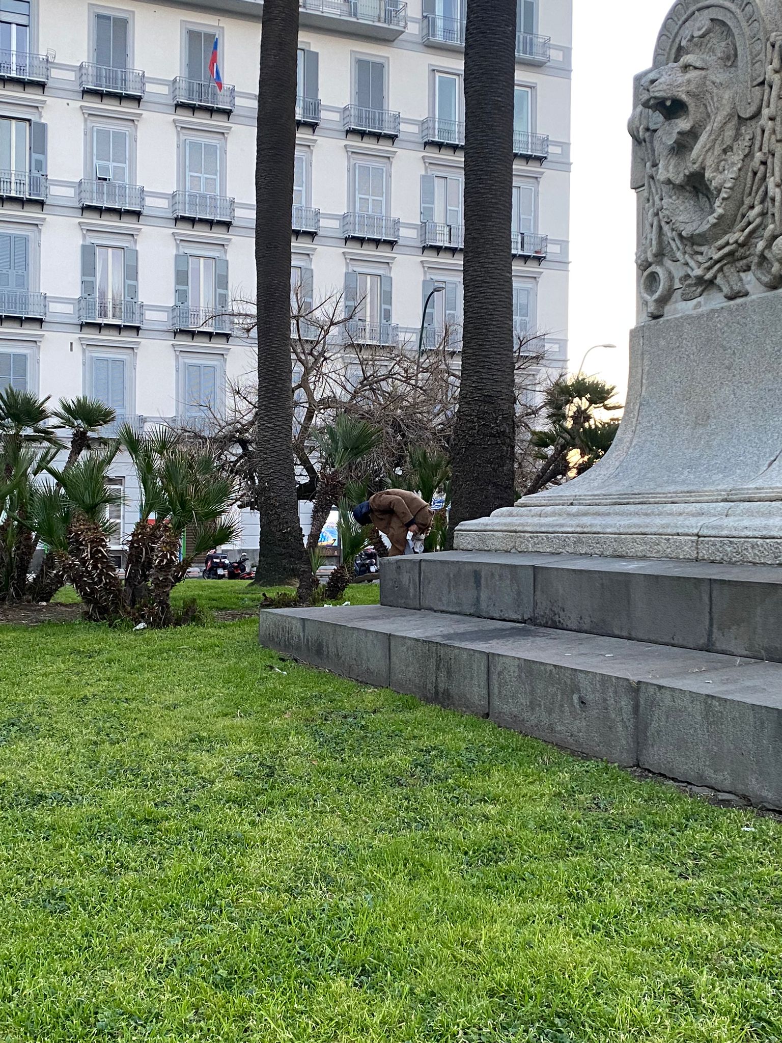 Piazza Vittoria, clochard ai giardinetti si “libera” in diretta: divieto solo per i cani?