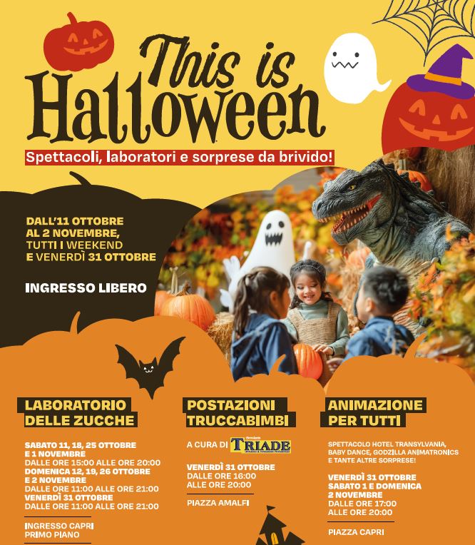 Non mancheranno le postazioni truccabimbi, a cura dell’Accademia Triade, che trasformeranno i più piccoli in streghe, vampiri o mostriciattoli pronti a vivere la magia di Halloween. L’appuntamento è per venerdì 31 ottobre, in piazza Amalfi, dalle 16.00 alle 20.00.