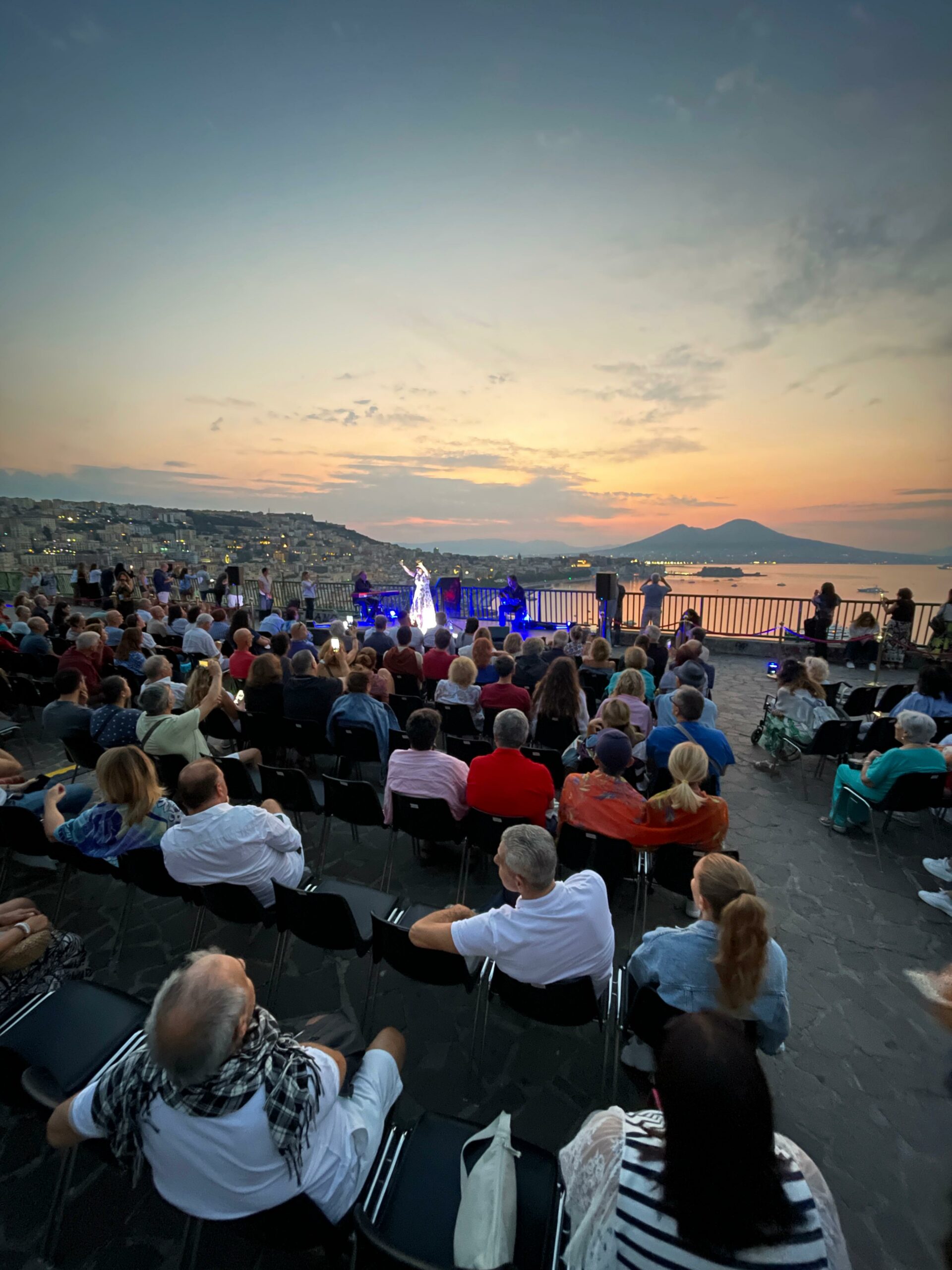 «Lo scorso anno abbiamo voluto proporre un’esperienza, un esperimento che ha avuto grande successo e quindi quest’anno abbiamo proposto di nuovo il concerto di Ferragosto all’alba sulla terrazza di Sant’Antonio a Posillipo, che entrerà negli appuntamenti fissi dell’estate dell’Assessorato. Un’iniziativa pensata per chi resta in città e per chi arriva in città. Sono molto contenta di aver trovato in platea un gruppo di giovanissimi turisti olandesi che mi hanno raccontato con entusiasmo il tour “Napoli tra le onde” a bordo del Galeone. Stiamo riuscendo a fare vivere una Napoli inedita a chi la sceglie come meta per le vacanze. L’obiettivo di “Vedi Napoli e poi Torni”, in tutte le sue declinazioni, era proprio questo». Così l’assessora Teresa Armato.