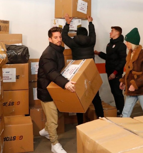 Dries Mertens, ex attaccante del Napoli che oggi gioca con la squadra turca del Galatasaray è sceso in campo con gli altri calciatori del club per dare il proprio sostegno e aiutare gli sfollati dopo il dramma che ha colpito la Turchia negli ultimi giorni.