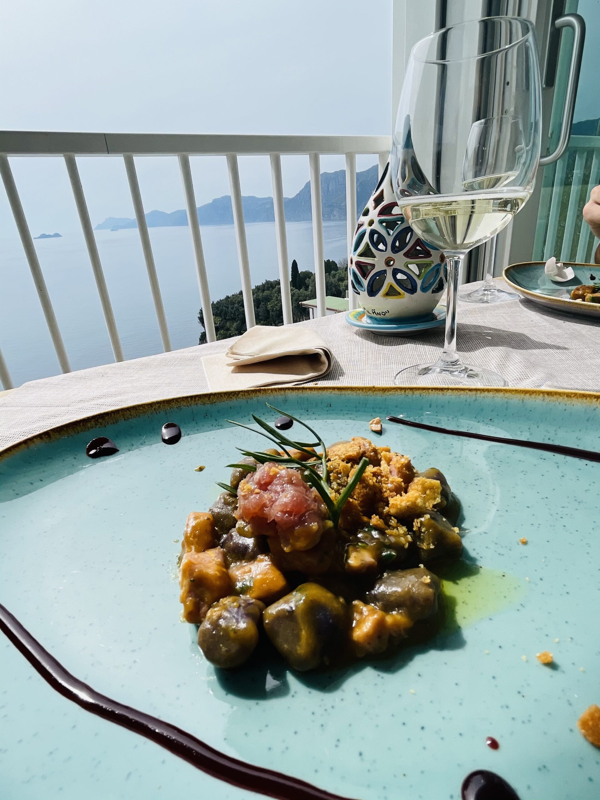Quando si parla di una location favolosa, a picco sul mare, con un panorama incantevole e con vista su “Li galli ” , Positano e Capri si deve immediatamente intuire che ci troviamo nel ristorante “Il Pino” di Praiano.