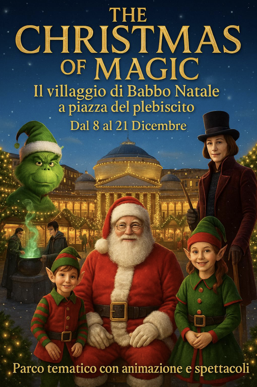 Lunedì 8 dicembre 2025 alle ore 10.00 in piazza del Plebiscito a Napoli sarà inaugurato il “Villaggio di Babbo Natale”; realizzato dalla Camera di Commercio nell’ambito dell’iniziativa “Illuminiamo Napoli”, attivo fino al 21 dicembre. Al taglio del nastro, con il presidente dell’Ente camerale, Ciro Fiola, anche il sindaco di Napoli, Gaetano Manfredi, l’assessora al Turismo e alle Attività Produttive del Comune di Napoli, Teresa Armato.