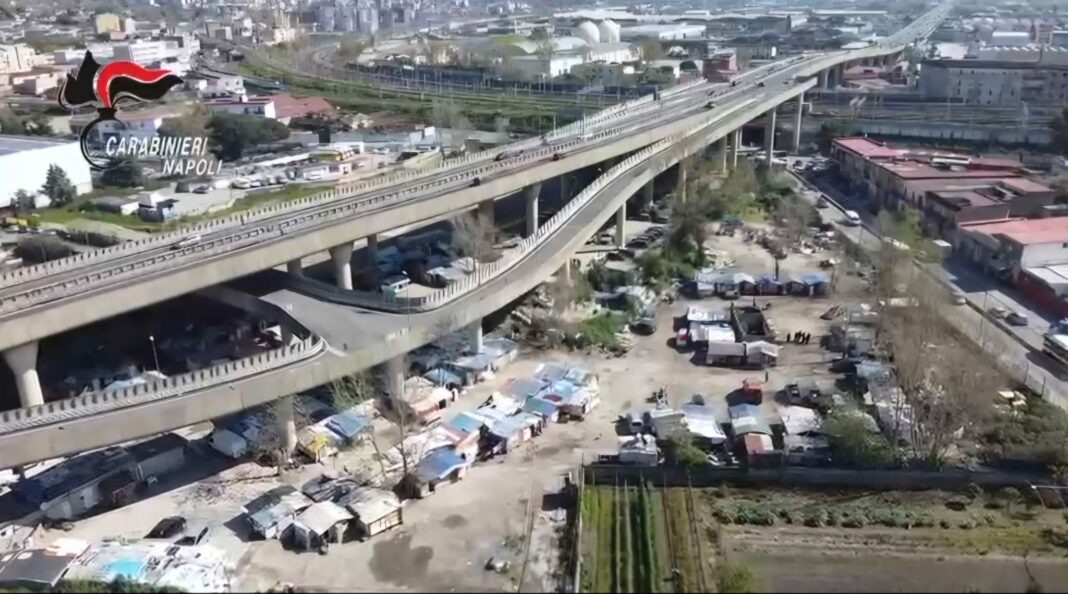 Napoli ha la sua ‘favelas’. E’ in via del Macello a Poggioreale. E’ lì che i carabinieri hanno effettuato il blitz stamani. La zona è un’area critica situata sotto i piloni della strada che collega Napoli ai comuni vesuviani. E’ un contesto sociale spaventoso e inaccettabile. Una criticità che le istituzioni del capoluogo partenopeo non possono tollerare. Rifiuti vari ammassati, fumi tossici, igiene inesistente, illegalità diffusa. Una esistenza indecente per coloro che la vivono quotidianamente. Eppure, ad un passo, c’è la Napoli architettonica più moderna, quella del Centro Direzionale. Invece in via del Macello, dove la luce del sole è una chimera, i militari hanno dovuto addirittura operare indossando mascherine protettive a causa dell’aria resa irrespirabile dai roghi che bruciano da mattina a sera.