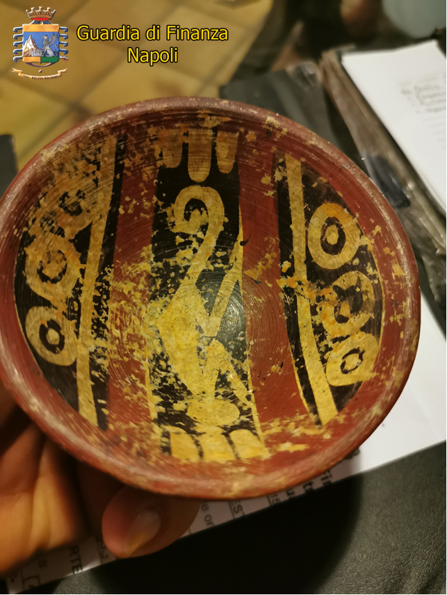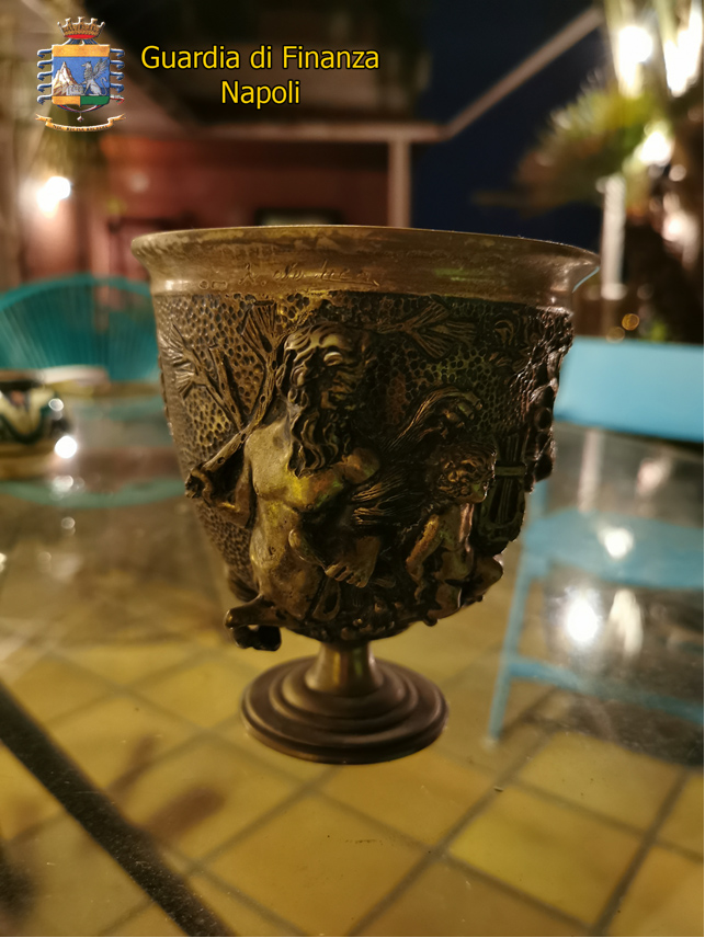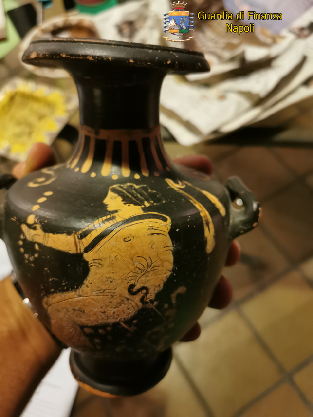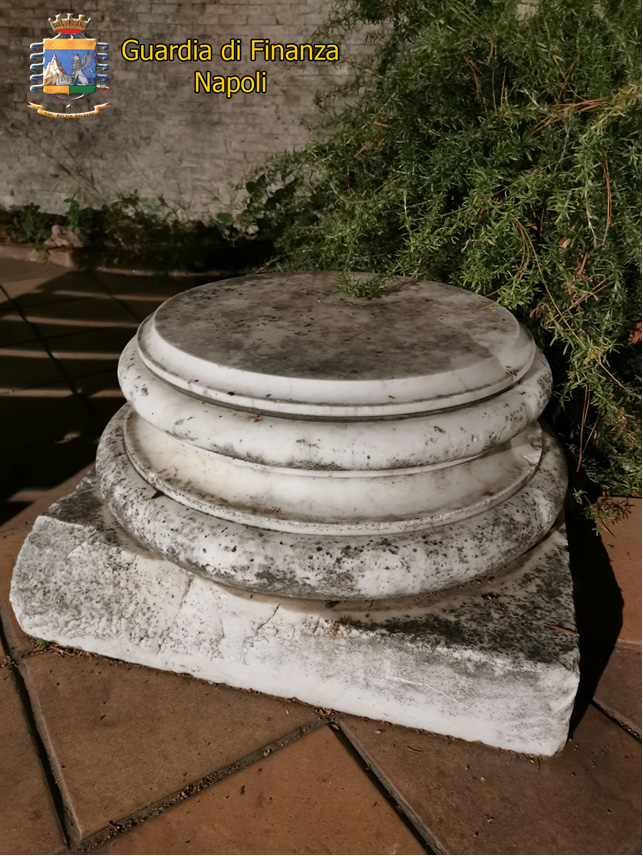 L’ispezione, infatti, ha consentito agli operanti di individuare 11 reperti risalenti a diversi periodi storici, ricompresi fra il V ed il XIX secolo, fra i quali diversi elementi architettonici come parti di Lesene, colonne e figure mitologiche, coppe intarsiate, scodelle, anfore di ceramica finemente dipinte e perfino una statuetta votiva. I reperti, attualmente a disposizione dell’Autorità Giudiziaria, saranno successivamente sottoposti, a cura della Soprintendenza Archeologia delle Belle Arti e Paesaggio per l’Area Metropolitana di Napoli, oltre ad una più attenta e precisa perizia tecnica, anche ad un lavoro di restauro, per poi essere esposti al pubblico.