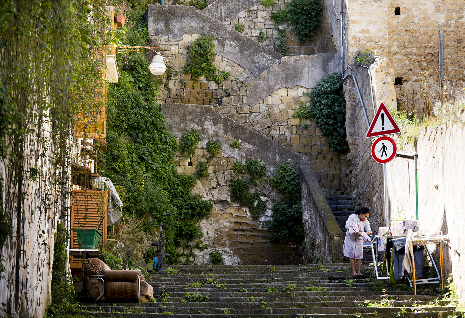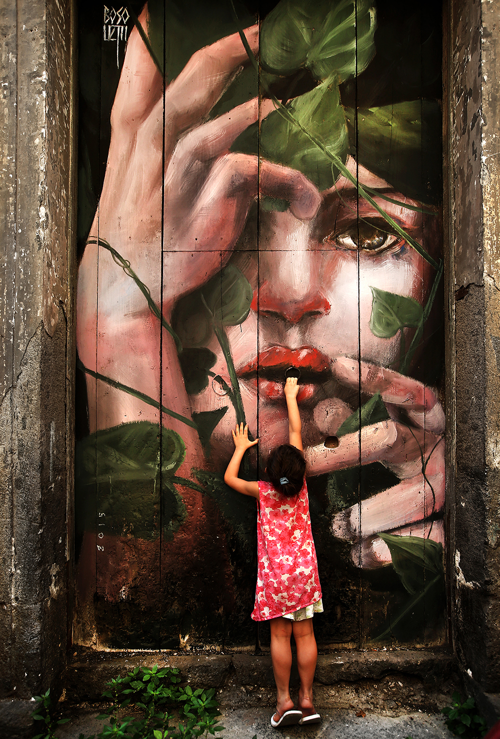 In 35 scatti, soprattutto a colori, con qualche immagine in bianco e nero, il visitatore potrà ammirare l’intensità e l’unicità della vita di Napoli, dove ogni regno che si è avvicendato, svevo e normanno, francese e spagnolo, ma soprattutto greco, ha lasciato indelebili tracce nei luoghi e nei tratti distintivi del popolo partenopeo, che cambia identità e sembianze a seconda del quartiere in cui vive. Siano affida a una bambina di 8 anni il viaggio alla scoperta della “sua” Napoli. Un viaggio che inizia con l’apertura del portale di una chiesa abbandonata a Materdei, in Salita San Raffaele, impreziosito dal dipinto dell’artista argentino Francisco Bosoletti; e la doppia veduta di Napoli, dal punto più alto della città, l’Eremo del Camaldoli, e dal mare. Da qui, una fantastica esplorazione di Partenope, teatro e museo a cielo aperto, bella da vedere e stupefacente nella scoperta.