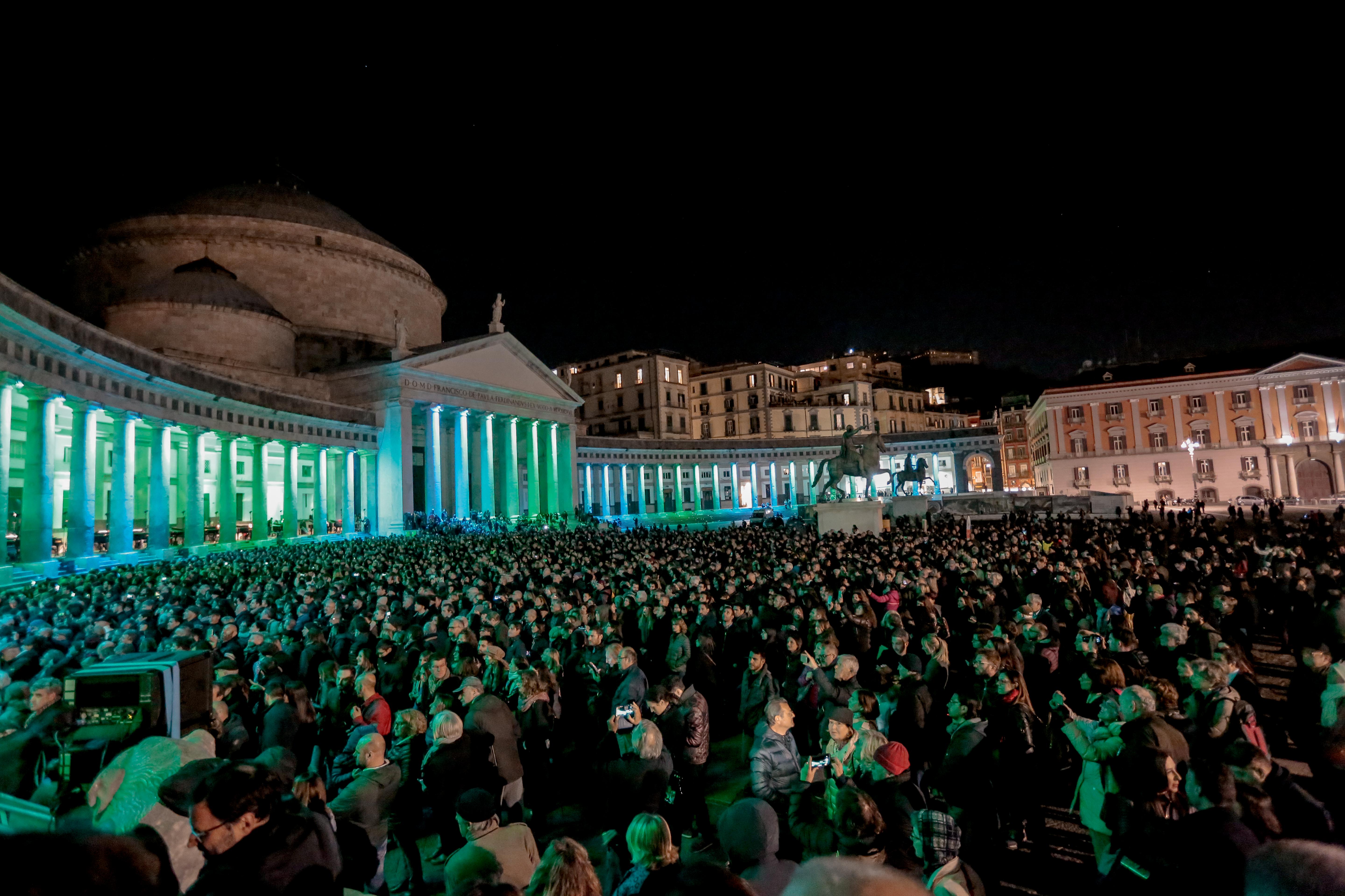 Grande successo per l’apertura ufficiale di Piano City Napoli 2019, organizzato e promosso dall’Assessorato alla Cultura e al Turismo del Comune di Napoli in collaborazione con l’associazione NapoliPiano. Questa edizione si era già preannunciata particolarmente prestigiosa e bella con il “Forum Scarlatti: Integrale delle Sonate di Domenico Scarlatti” al Conservatorio San Pietro a Majella, ideato da Dario Candela, direttore artistico sezione classica Piano City Napoli. La risposta l’ha data la città: in 10.000 si sono ritrovati nell’imponente Piazza Plebiscito per il concerto dei 21 pianoforti sotto il colonnato, dedicato alle Ouverture delle più note opere, a cura di Patrizio Marrone, diretto dal maestro Mariano Patti e anticipato dall’esibizione dell’Orchestra Regionale di Pianoforti dei Licei Musicali della Campania. Il concerto è stato accompagnato dalla proiezione in Piazza del Plebiscito dell’opera “SOL” dell’artista Davide Cantoni.