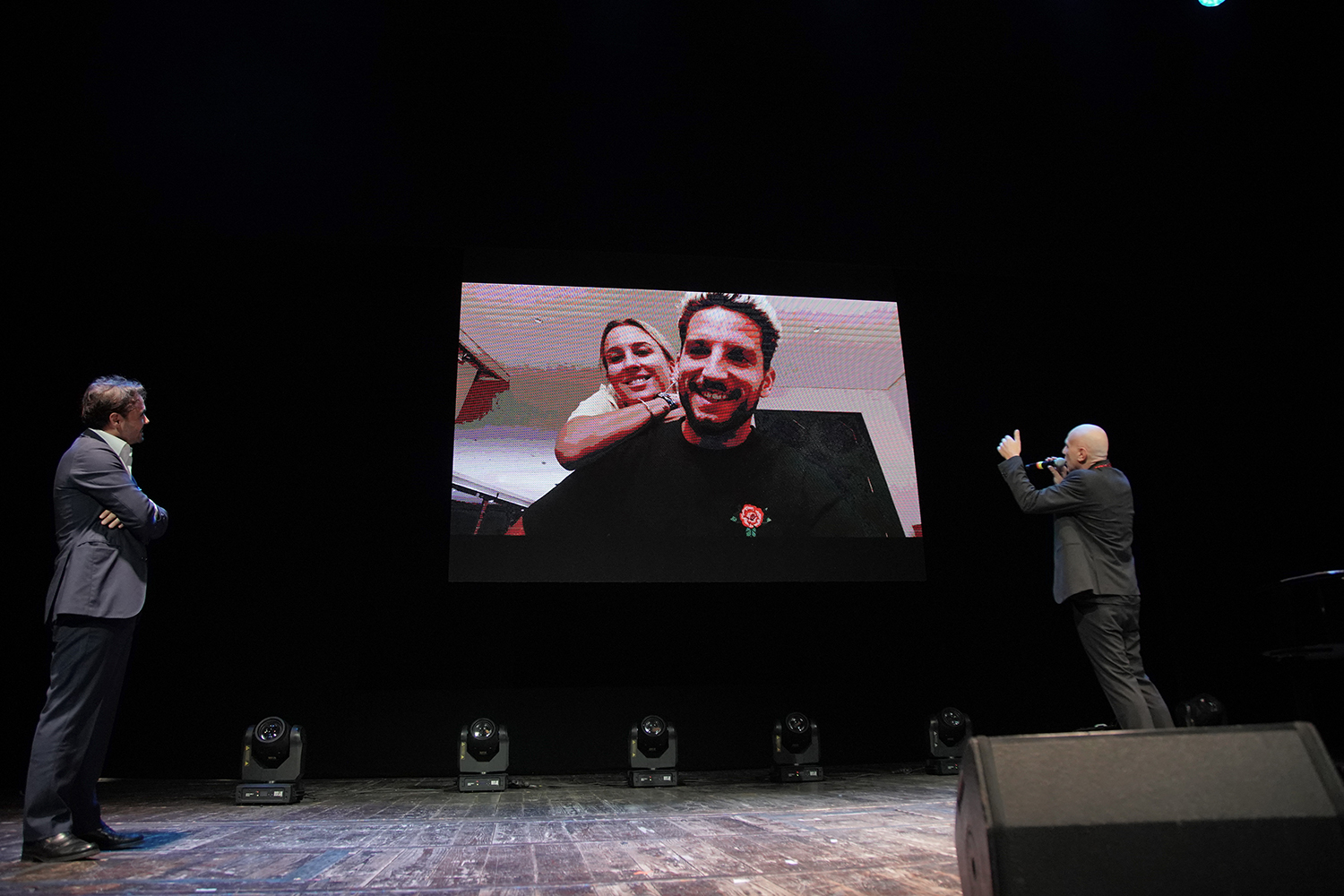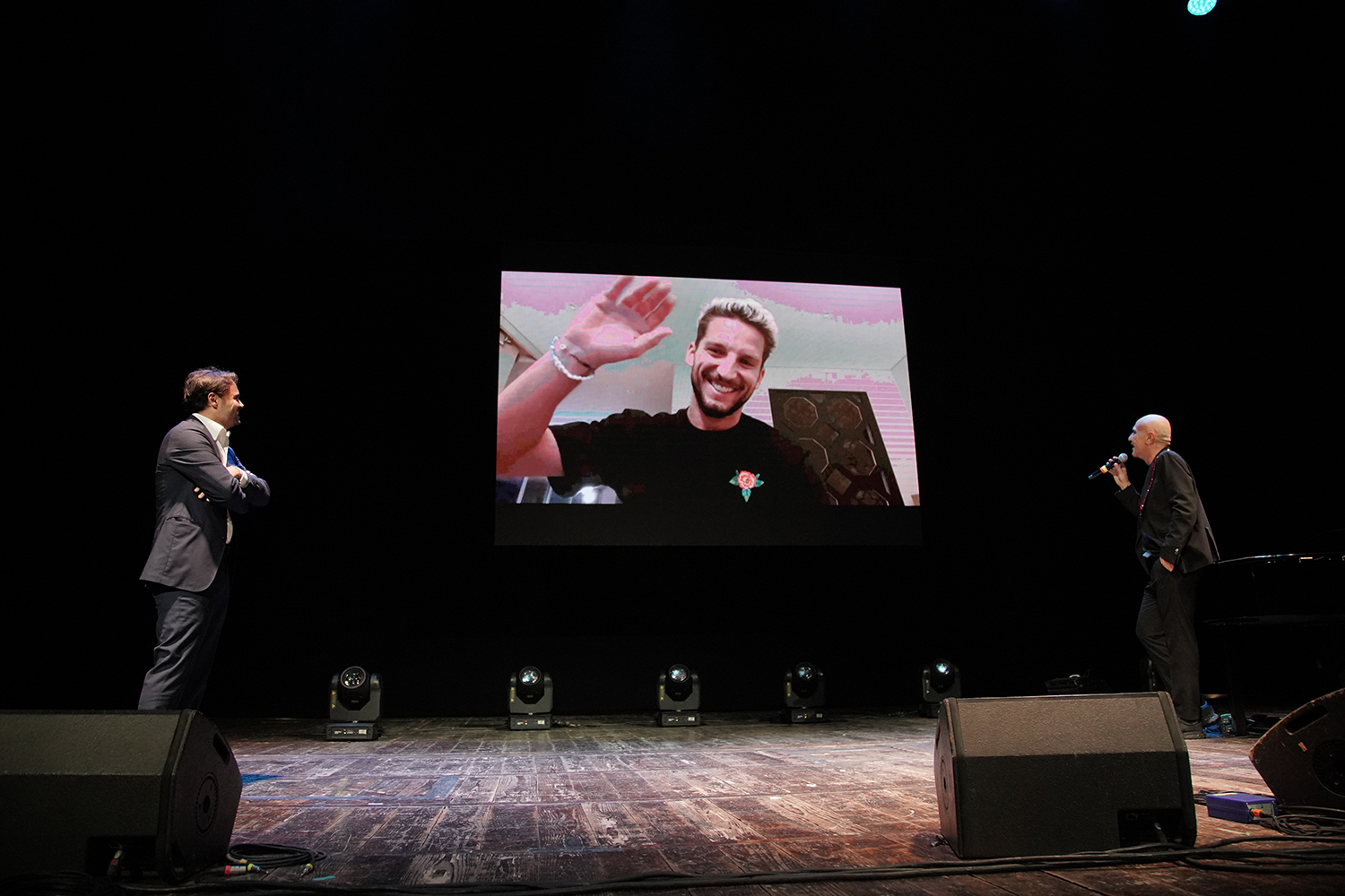 Attesissimo il momento del collegamento video con Dries Mertens. Il campione, tra i premiati di questa decima edizione del Premio San Gennaro World, è stato accolto dalla platea con un boato. Comparso in video con la moglie Katrin, innamoratissima anche lei di Napoli, Dries ha dichiarato: “Sto bene ma mi mancate. Torneremo a Napoli. È la città più bella del mondo! Mi sono subito innamorato della casa a Donn’Anna e del panorama del mare, anche se quando l’ho vista era da ristrutturare. È ancora oggi la nostra casa e in futuro staremo là”. Una videochiamata emozionante e piena d’amore.