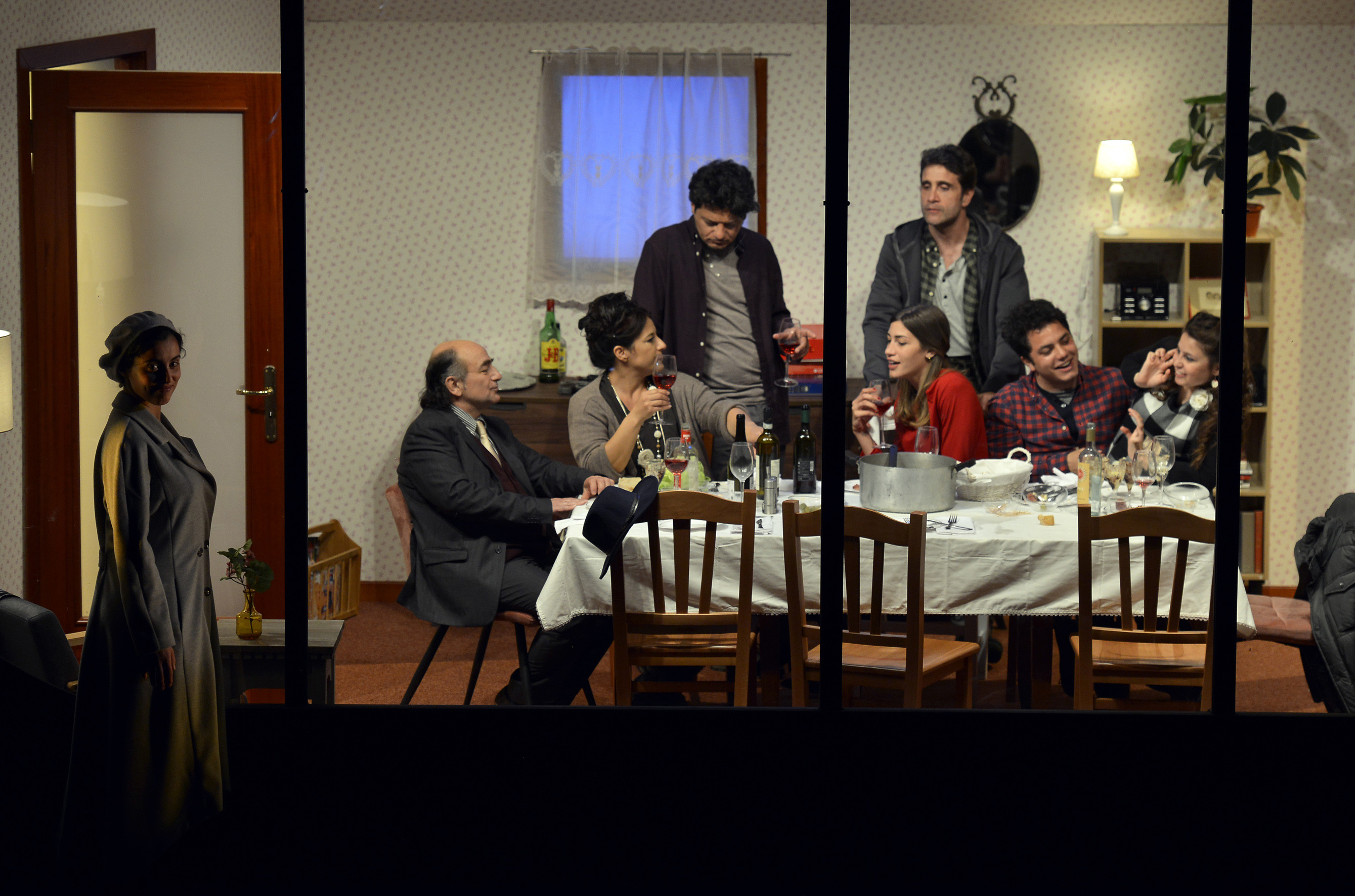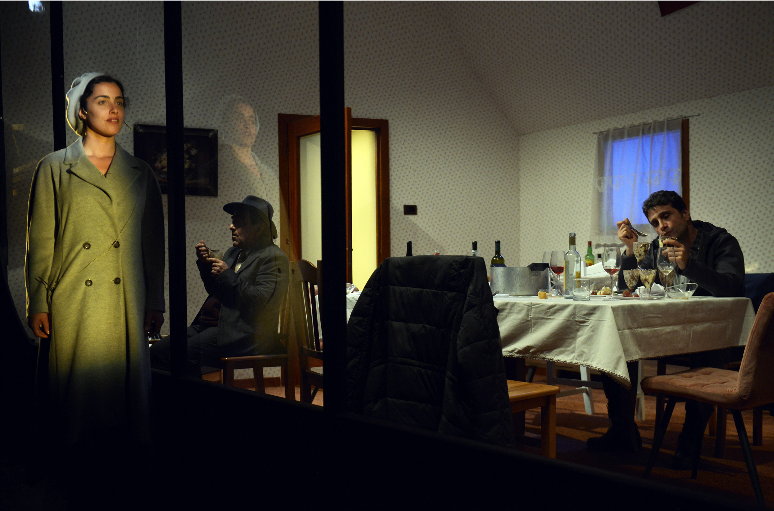 Nel corso dell’allegra serata una figura misteriosa osserva i festosi movimenti dei commensali, separati sulla scena da una imponente finestra-schermo che li posiziona in un silenzioso altrove. “Comincia così un racconto parallelo – conclude Lenton – che immagina e forse prefigura vite e destini dei presenti. Cosa stanno vivendo ora, cosa hanno vissuto, cosa vivranno?”.