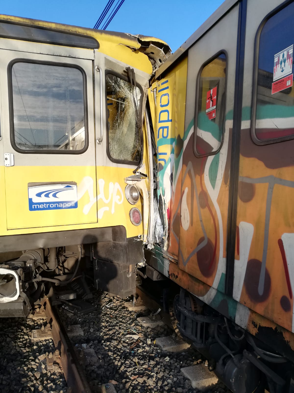 L’impatto ha fatto saltare tre porte del convoglio. Sul luogo è stato allestito nell’immediato una postazione del 118 Napoli per assistere i feriti lievi.