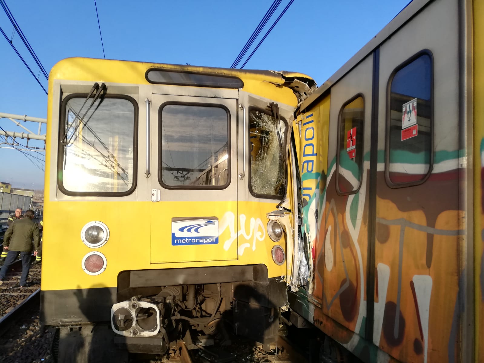 L’incidente ha coinvolto anche un terzo treno con molti passeggeri a bordo appena partito dal binario 2 della stazione di Piscinola.